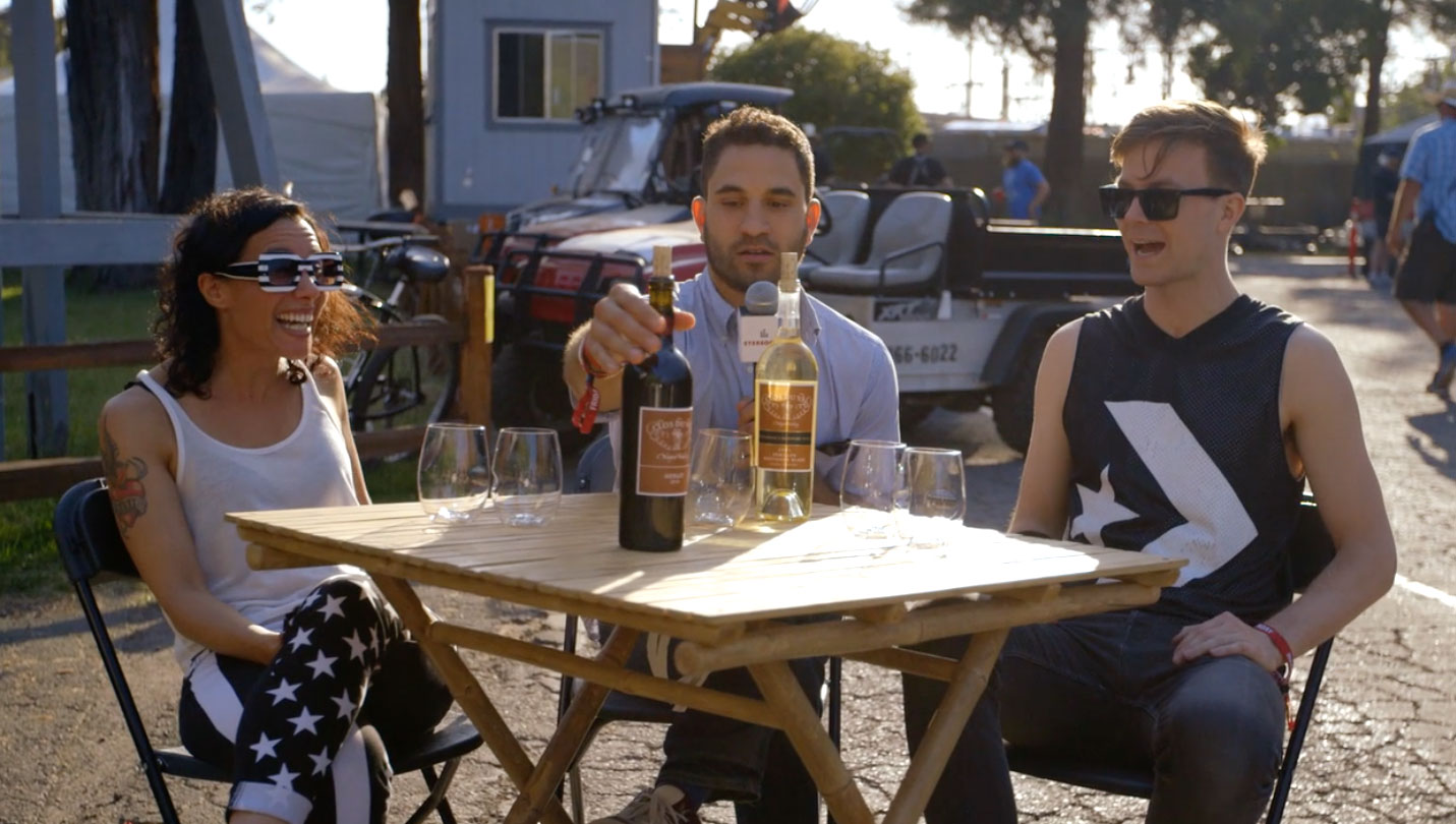 At Napa Valley's BottleRock festival, comedian Gabe Delahaye invited Brooklyn indie synth-pop heroes Matt Johnson and Kim Schifino to an indie wine tasting. The duo had just played a high-energy afternoon set on the main stage, so they were pretty thirsty. Watch as Matt and Kim and Gabe discuss the difference between wines, how to pronounce Sauvignon, and how to trick your guests into drinking the cheap stuff.