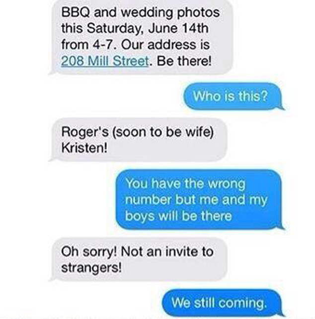 Over the past few weeks, a viral story has been making the rounds about the wedding photo above that was declared "the best wedding photo ever." The supposed story behind the photo was that a bride-to-be texted a wrong number with the location of a BBQ/wedding photo party and the recipient replied with "We still coming," which inspired a hashtag and countless posts in an effort to attract pageviews. (Hey...)