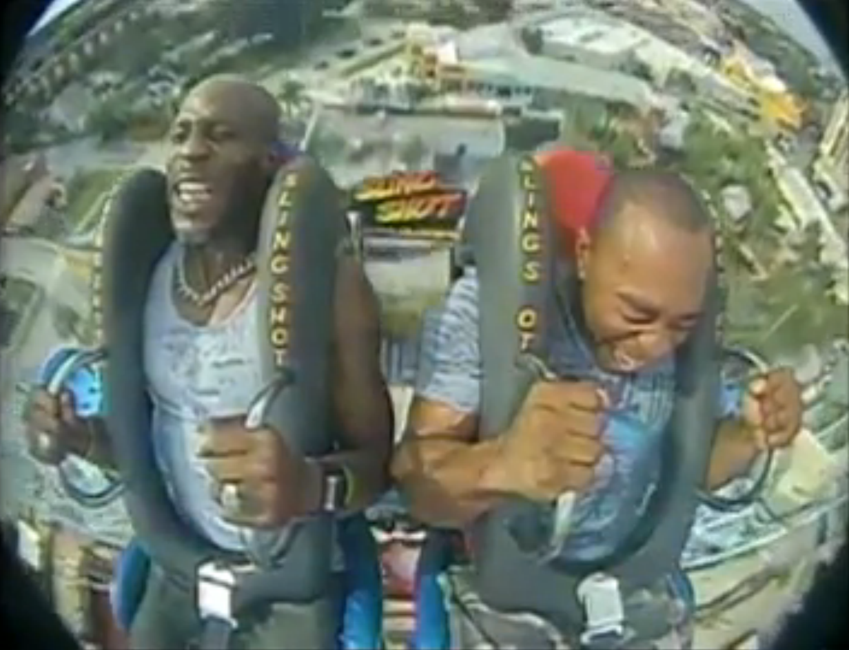 Last we heard from DMX, the legendarily loud and volatile rapper was wisely backing out of a celebrity boxing match against George Zimmerman that would have made a mockery of the Trayvon Martin tragedy. It seems our old friend Earl Simmons has moved on to appreciating life's lighter side since then. A new TMZ video shows DMX losing his mind (up in here) on an Orlando amusement park ride called the Sling Shot. If you're like me, you will laugh hysterically at the sound of Simmons yelling and barking as if he just stepped into the vocal booth. He should record a whole album under these circumstances. I don't think I can adequately express how wonderful this footage is, so see for yourself below.