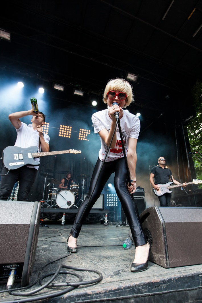 While Royal Blood and Kate Nash played across the way, Scottish stars CHVRCHES attracted the biggest gathering of the afternoon, their dark, melancholy electro-pop a strong contrast to all the beach balls bouncing about and the fire hose dousing anyone within a 50-yard radius. Singer Lauren Mayberry was in very good humor, noting the irony of the situation, and nevertheless put in a vocal performance that shows how much she has improved as a frontwoman over the last couple years.