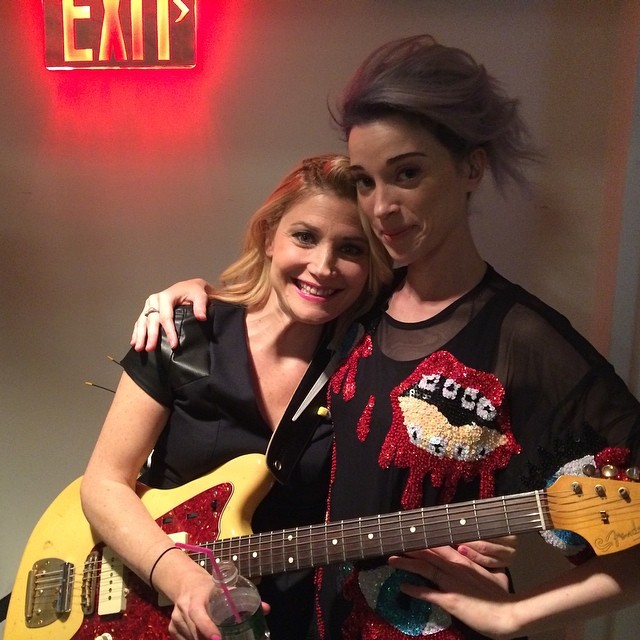 All week, St. Vincent's Annie Clark is sitting in with the 8G Band on Late Night With Seth Meyers, filling in as bandleader for her friend Fred Armisen. We posted video of her first night on the show, and she was back again last night, and the band once again featured her fellow shredder Marnie Stern. It's a pretty weird dynamic when the guest bandleader is arguably more famous than some of the guests on a show, but Clark, wearing a crazy dress and answering Meyers' questions as plainly and politely as possible, seems into the challenge. Below, you can watch last night's entire episode and see Clark playing before and after every commercial break.