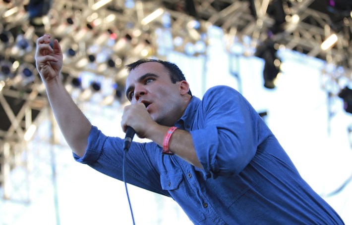 The sparse and psychedelic dance project of Nicolas Jaar and Dave Harrington is closing in on its final days. Perhaps that gives their last sets an additional weight, but really this could have been just another show for these guys and it still would have made this list. While most of FYF's dance acts overloaded their audiences on lights, Darkside stayed true to their name as they weaved haunting synth lines and winding guitar drifts in dim light, filling the stage with nearly as much smoke as you'd find at a Sunn O))) show. In the final moments during the stark, sprawling "Golden Arrow," the stage's center screen reflected a blinding, laser-like beam far out to the back of the arena, creating a mini-sun in a place that had lacked it all weekend. There was even more finality in the end as the duo tore the screen apart before walking off stage.Though Claire Boucher's set still includes the same songs we first heard on 2012's Visions, it's amazing how much Grimes has changed since that album came out. Where Grimes may have initially sounded like an artist building her own world where she played a pop star, we have seen her evolve into the very thing she was pretending to be. She comes out now with such an inspiring confidence, and blows through these same songs, which have evolved and changed in the live setting so as never to become predictable. Better yet, she now performs with a light show and choreographed dancers that turn each song into a celebration and a spectacle.Behind a screen projecting bizarre, writhing visuals that morphed with the same fluidity as his music, Steve Ellison (aka Flying Lotus) blew through highlight after highlight from his old albums, Until The Quiet Comes, Cosmogramma, and perhaps more importantly his sophomore breakthrough, Los Angeles. That last one, of course, is named after Flying Lotus' hometown, and this performance felt like a grand homecoming as he gets ready to drop one of the most anticipated albums of the year. Early on he tossed in the cheery melody that plays when you win a battle in Final Fantasy. It felt like the perfect place for it. For a set that often feels like an attack, he was confident enough to predict his victory.Dan Snaith's DJ persona, Daphni, is merging closer than ever to his main project, Caribou, and in this set they occasionally overlapped. The major highlights of Caribou's new album Our Love appeared during Daphni's set, built into even more explosive club mixes. Though the rise-and-rise final 15 minutes played out like the grand finale of a fireworks show, the most exciting part came when Snaith went after his own recent "Can't Do Without You," turning what already felt like one of the most epic songs of the year into a 10-minute odyssey.The winding walk down to the Los Angeles Memorial Sports Arena, which housed many acts at FYF, is a strange experience. You move into the subterranean layer as the bright L.A. sunlight disappears. It grows dark, and then you move into the dimly lit arena, which is massive and abyssal. The setting gave Slint an actual sense of intimacy. Here was a space that people wouldn't stumble into accidentally, a place fans had to seek out and find. It gave songs like "Don, Aman" the silence necessary for its intensity to build, while the volcanic closer of "Good Morning Captain" used the enclosed space to build like a pressure cooker. In the final minute over the howled screams of "I MISS YOU," the crowd finally burst into a fierce mosh pit that was over nearly as soon as it began. For the rest of the weekend the arena housed electronic acts and was a warm and welcome club space, but Saturday afternoon, Slint made it terrifying.When I saw Future Islands back in April at a sold-out show in New York, Sam Herring noted it was the biggest audience the Baltimore band had ever played to. Now Future Islands have truly stepped up to the sort of audience that fills up a festival main stage. Herring's presence can be big enough to leave an impact on you from far off in the distance, or deliver a one-on-one intimacy to those closer up. It's a dynamic I've only seen one other person pull off at a festival, and that was Willie Nelson. When Future Islands opened their set, Herring mentioned that it was the third time they'd played FYF, but "we're real happy to be here on the main stage." Everybody in that crowd must have felt the same way. If you don't dance during Todd Terje's DJ set, you will stand out. But don't worry, he will make you dance. Here in the arena space he moved through a set that built and built in momentum. He never let up even once as he chained together a series of space-disco epics that seemed impossible to top. It all rises and rises until everything boils over into the closing "Inspector Norse," which, like the final towering swoop on a roller coaster, we all knew was coming, but had no possible way to prepare for.While the post-millennial My Blood Valentine show is a sensory overload of noise force, the newly reunited Slowdive overwhelm you with a sensuality and warmth that is unbeatable. This is a band that touched people. But how could they not when they play with such a confidence and energy, completely rewriting the actual idea of what a shoegaze band is supposed to do on stage? This was the rare instance of a band coming back together years after their career ended and actually reminding you how great they've always been. It was a performance that forced you to reevaluate the band’s already solid legacy.What happened to Dev Hynes and Samantha Urbani earlier this month is awful and terrifying, but that didn't stop Blood Orange from delivering a colossal set at FYF. Starting five minutes early -- without even a band -- Hynes ran out (still with his leg brace on) and started singing a cappella, as everyone else in his band set up and slid right into place. Not a second was wasted, but it was all performed with a laid-back ease. Hynes gave everything you could have wanted, throwing in a new
