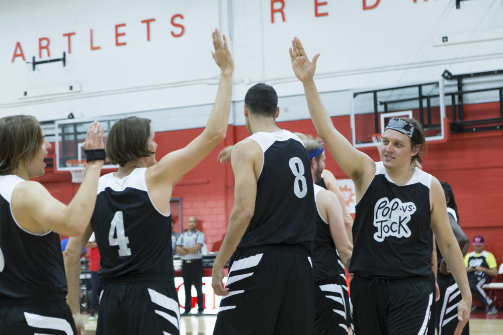 The annual Pop Vs. Jock celebrity basketball game went down today in Montreal as part of Pop Montreal festivities, and as promised, it featured some all-star halftime festivities involving covers of Phil Collins and the White Stripes. Correspondent Greg Bouchard (who also attended Steve Albini's cooking class the other day) passed on some footage. Bouchard explains, "What you're looking at is is Win Butler, Will Butler, Justin Vernon, Regine Chassagne, Nikolai Fraiture, A-Trak, and Kid Koala singing 'In The Air Tonight' by Phil Collins and jamming a little on 'Seven Nation Army.'" They billed themselves as the POP All Star Band. Watch videos of both performances below.