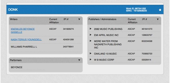 Over the weekend a photograph that appeared to depict the tracklist for a second volume of Beyoncé's self-titled surprise video album started circulating on social media. That's the image above; note that it's on stationery bearing the logos for Beyoncé's management company, Parkwood Entertainment, and her record label, Columbia. Vulture did some research and found that Beyoncé officially registered one of the songs on the alleged tracklist, a Nicki Minaj duet called "DONK," several weeks ago, and that Pharrell and The-Dream had a hand in it.