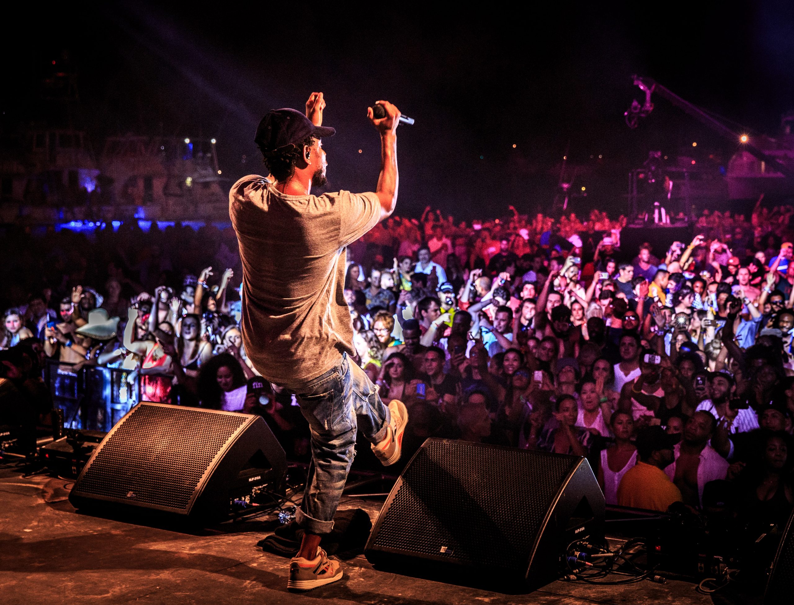 Goulding's set skewed towards the more uptempo material in her catalog, given the setting. Earlier on, there were a bunch of boats docked nearby blasting house music loud enough to actually drown Goulding out, but she'd hit her stride more by the end. "Lights" sounded great, and was followed by a few more hits before she yielded the stage to Lamar. Seeing K.Dot was, for me, a chance to rectify a past mistake: I'd had one chance to see him in the past, opening on the Yeezus tour, and because it was one of those "No, the show really does start at the time it says on the ticket" situations, I walked in halfway through his set and then spent that remaining half really disappointed with myself. This time around, there was also the hope that we'd hear new material debuted. The latter part didn't happen, with Lamar primarily sticking to the heavy hitters from Good Kid, m.A.A.d. City. "Backseat Freestyle," the title track, and "Swimming Pools (Drank)" were all absolute monsters live. He closed with "i," which came off like a sunrise when juxtaposed directly next to the much darker material from Good Kid. During his set, I leaned against the rail of the sound booth back in the crowd so I could look out at everyone. A group of Puerto Rican girls danced in bikinis to my side, which caught the eye of a cameraman documenting the whole thing for Bacardi. He walked behind them and crouched so that his lens was positioned so that, I'd imagine, the end result is going to show them exclusively waist-down. The man in the sound-booth shook his head in unsurprised disbelief, laughed, and said something like "That guy knows exactly what he's looking for."