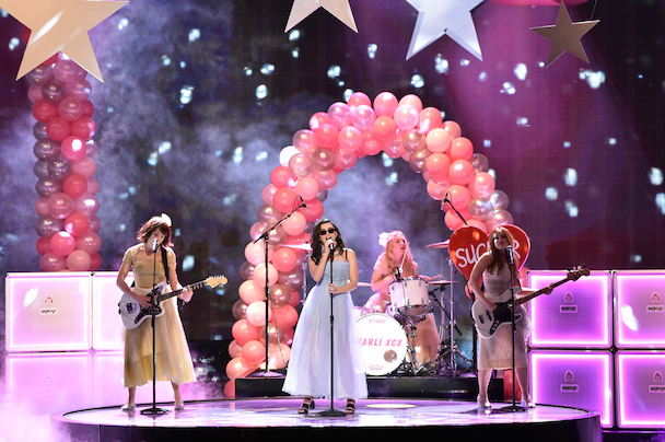 The American Music Awards are being held in Los Angeles tonight with host Pitbull. Taylor Swift opened up the show with the live debut of her new single "Blank Space." On Twitter before the show, Swift promised that it was "gonna be crazy. No like, actually crazy." Judge for yourself. Charli XCX did a medley of "Boom Clap" and "Break The Rules" and brought out some goth-inspired background dancers. Lorde performed her Hunger Games song "Yellow Flicker Beat" on live TV for the first time. Sam Smith and A$AP Rocky did "I'm Not The Only One" and the Weeknd came out with Ariana Grande for "Love Me Harder." Waka Flocka Flame did a weed-themed commercial for throat drops. Lil Wayne debuted a new track with Christina Milian and Nicki Minaj performed her new single "Bed Of Lies" with Skylar Grey. Swift was handed the first ever Dick Clark Award For Excellence by Diana Ross. See performances plus the winners list below, and check out pictures above.