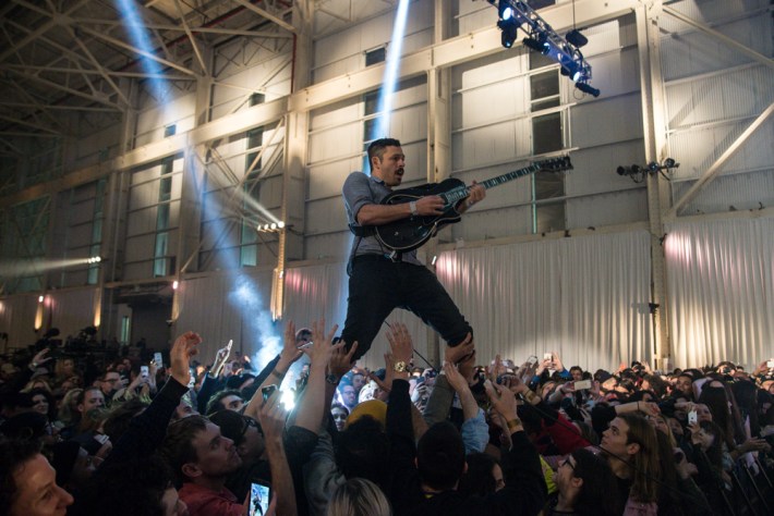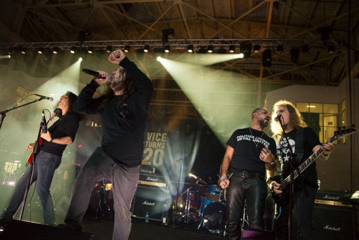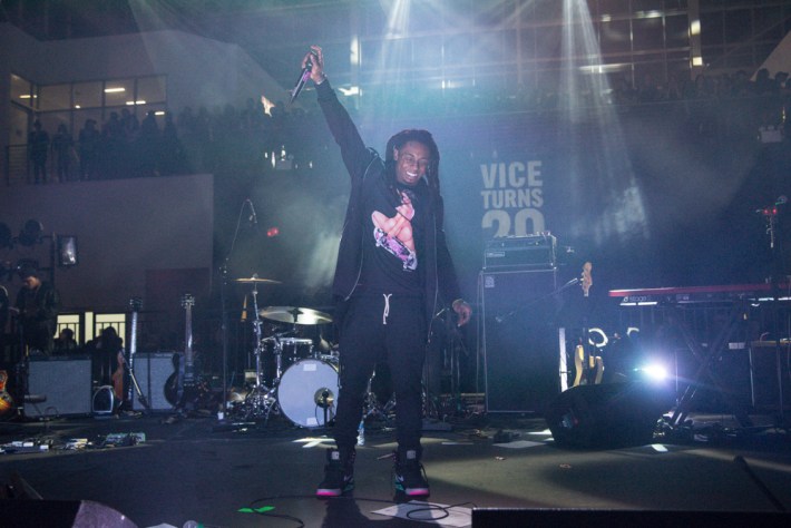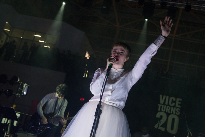 There was a not-entirely-common sight down around the Brooklyn Navy Yard last night. Dozens of cabs lined the street, because depending on where you're coming from the Navy Yard can kind of be a pain to get to, and also because NYC's been doing this thing where it's decided to just rain constantly in December, which isn't so fun. The reason there were enough people to fill dozens of cabs going to the Brooklyn Navy Yard on a Friday night is that Vice was taking a brief respite from eating Williamsburg to throw a big blowout for its 20th birthday. Set in the Duggal Greenhouse, Vice's party revolved around a concert with an honestly pretty insane array of guests, including Jarvis Cocker. If Jarvis Cocker is going to be someplace, you tell me where to be and I'll be there.