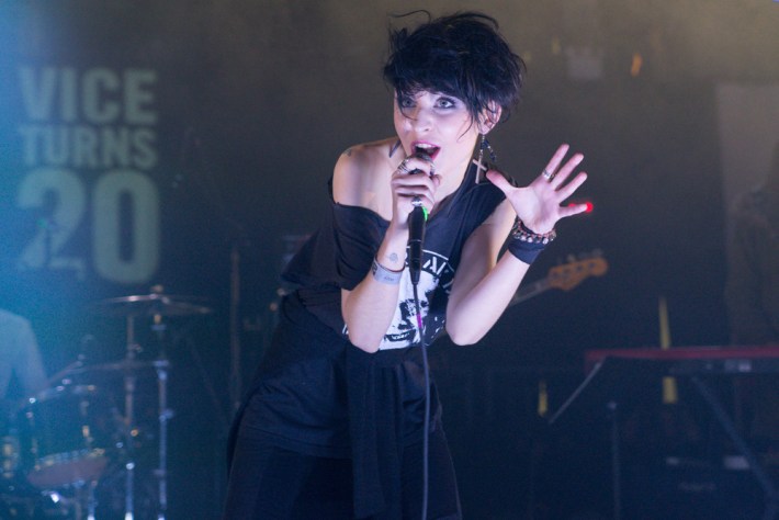 Meredith Graves came out and did the Strokes' "New York City Cops," a NYC anthem of the last twenty years but also the one moment of the night that obliquely referenced the more depressing events in NYC this week, outside the temporary fantasyland of Vice's birthday extravaganza.