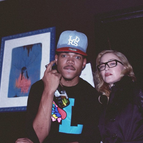 Madonna revealed the full tracklist for her new album Rebel Heart on iTunes today, and there's one especially curious inclusion. "Iconic," the album's ninth track, features both young hip-hop talent Chance The Rapper and legendary boxer/outrageous person Mike Tyson. Madonna popped up on Chance's Instagram in late 2013 and again last October, around the same time Madge posted a Chance portrait on her own account, so his appearance on the album comes as no surprise. Tyson, though, is a bit of a shocker -- or at least a head-scratcher. I wonder if he was in the studio at the same time as Chance; if so, between this and his recent interview with Earl Sweatshirt, Iron Mike is really getting a handle on the young hip-hop talents of the world. Rebel Heart also includes the previously announced Nicki Minaj collab "Bitch I'm Madonna" and the Nas-featuring "Veni Vedi Vici," and it's a whopping 19 tracks long. Full tracklist below: