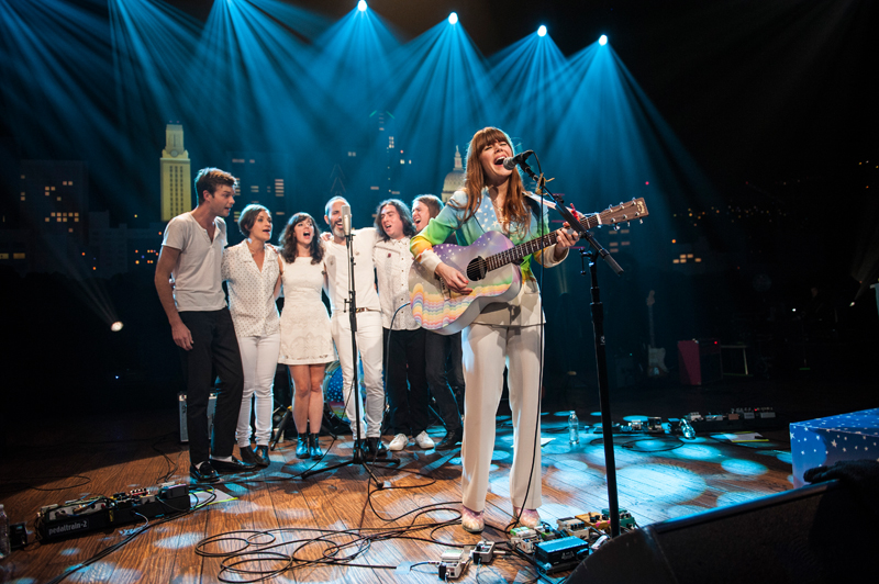 Yesterday we saw one of Ryan Adams' performances from this weekend's episode of Austin City Limits; today we see one from his tourmate and close collaborator Jenny Lewis. Rocking the iconic multicolored jacket from her The Voyager album cover, Lewis strums her way through her instant-classic twangy lament "Just One Of The Guys." The performance is interspersed with behind-the-scenes footage. Watch below.