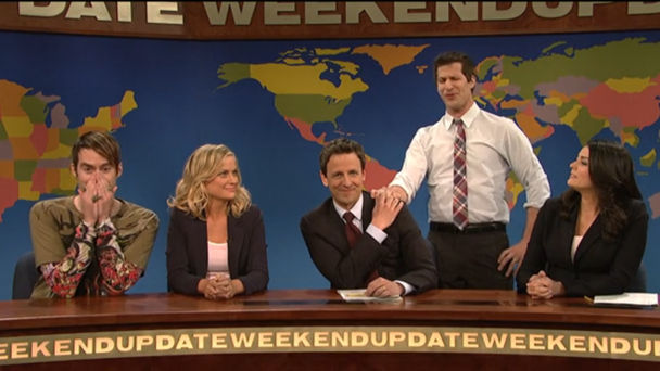 At the end of Weekend Update we all said goodbye to Seth, joined by Amy Poehler, Stefon, Andy Samberg, and for a second there Fred Armisen. The best! This was an excellent farewell, even if it was sad, too.