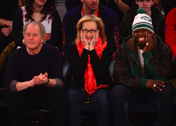 "I told you that you would have a good time if you just let yourself relax," said Meryl, playfully punching 50 Cent in the arm. "You're right, Mer. Sorry I was such a grump earlier." "50, please, no apologies necessary -- we all know I'm the queen of grump." "You are not!" "Are too!" "Are not!" "50!" "MER!" [Collapse into a hug.] [Scene.] (Via Uproxx.)
