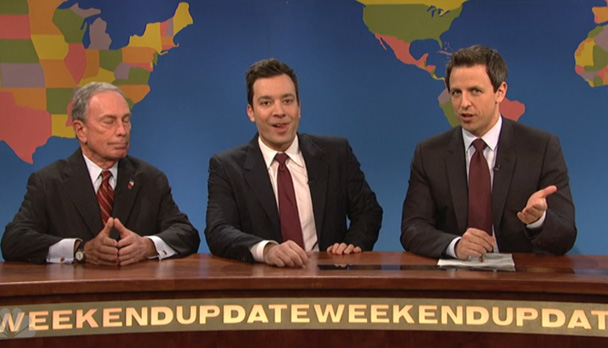 Weekend Update was fiiiine. Seth talked to Jimmy and Michael Bloomberg about the big changes they'll be going through in the coming year. Bloomberg delivered his jokes pretty well and with a good attitude, nice! Jimmy is the third installment of Update-guests-getting-worked-up-about-Seth-leaving (the first two were Jacob the Bar Mitzvah Boy and Drunk Uncle) and obviously Jimmy's getting worked up carries the most weight since Seth's taking his place at Late Night. All in all a good segment!