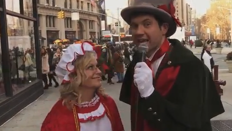 - Billy Eichner appeared on Jimmy Kimmel Live last night to give all of us a wonderful early Christmas gift: he and Amy Pohler running around the streets of New York, forcing strangers to sing carols with them for a dollar. -JimmyKimmelLive