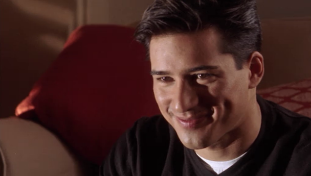 So anyway, she has to make a kid a sundae and he eats it too fast or whatever, and she gets so mad. Meanwhile, Mario Lopez (David Martin [good name], another business man) comes in to wait for his girlfriend. He has a ring. His girlfriend comes into the diner and is rude to the waitress. We are supposed to hate her immediately. But before she could get to David Martin's table, Trudie grabs an old gun that her racist caricature Hindu boss keeps in the store, corners David on his way to the bathroom, and KIDNAPS HIM AT GUNPOINT.