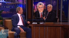 - George Bush presented Jay Leno with a painting he did of him last night on The Tonight Show, which is certainly something. -NowThis