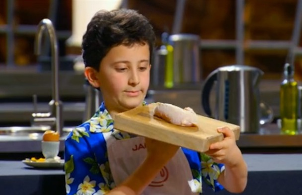 Wowowow! I can't believe we're here -- part one of the two-part MasterChef Junior finale. I like how with this show, they don’t really care if anyone knows what’s going on, or bother with exposition or clarity. They’re just like “two-part finale!” with no warning, then pray to soufflé and egg gods that it will work out, call little girls gorgeous, wear vests as grown men, give away $100,000, and bring live chickens and a chicken coop big enough to house a homeless person into the studio for a laugh! They really did bring in chickens and a chicken coop this episode, N’ tha kids were laffin' because they thought they were gonna have 2 kill a chicken!