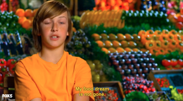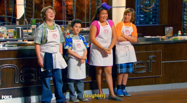 But really, they just had to make a soft-boiled egg. [Ed. Note: Kid Nation: 1, MasterChef Junior: 0.] The chicken coop was just an expensive, fun, necessary joke. Loved it. The kids were planning to concoct “a firm egg white with a wonderful burst of yolk” (Ramsay’s words), but then they found out they didn’t have a timer! How were they going to know when the egg was done?! I don’t know. Everything was topsy turvy, upsy daisy, and everyone was acting crazy. As Graham said, “this could be a $100,000 egg.” Graham was back from his vacation and didn’t acknowledge that he was ever gone, and instead was just raring to go. That’s so Graham.