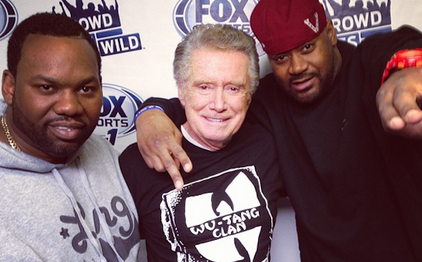 Due to somewhat unforeseen circumstances, we'll be gone for the rest of the day! ("We'll" meaning "I'll" -- "we'll" is an editorial lie that sounds more professional than the truth.) But that doesn't mean you guys have to stop talking about your days! HOW ARE THEY GOING? What are you going to eat for lunch? What are you eating for lunch? How was the thing that you ate for lunch? What are you going to eat for dinner? (What else to people talk about?) I'll tell you one thing, it looks like Regis Philbin is having a great day hanging out with some of his best buds, Ghostface Killah and Raekwon. "All I need is my Wu-Tang shirt and a couple of pals" -- a classic Regis quote. Worlds been had not colliding because clearly these worlds are always with each other, hanging out. In similar news, I saw an episode of Live! With Kelly & Michael recently, and Michael Strahan is doing a great job! Haha. What news do you have to report? Let me know, and please enjoy some Regis Philbin impressions after the jump.