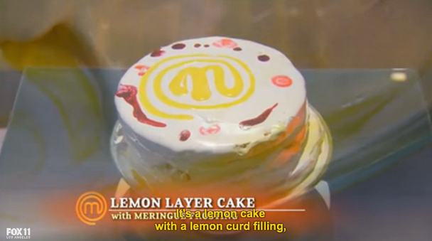 For the next challenge, Sarah decides that everyone has to bake layer cakes. Well, we all know that it’s a piece of cake to bake a pretty cake! But it turns out that that’s not true? I don’t know. Graham Elliott says that layer cakes are really hard to bake. A lot of the contestants must have used messy recipes because their cakes turned out crazy! Alexander’s sucks! Can you believe it?! ALEXANDER IS THE ONE WHO MAKES DESSERTS! I feel like I know a lot more about Alexander now that I’ve seen this icing job. It’s interesting to watch someone who is clearly capable of greatness (greatness!) create something that is just such a piece of garbage. And the MasterChef logo is ugly in general but that splotchy streak of purple is just the mark of Alexander’s moment of sad defeat. #Deathofasalesman