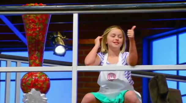 Because Ramsay said, “Come here, you, gorgeous” to Kaylen. And Kaylen took solace in the fact that she’s “the only girl who poured completely unwhipped cream on Chef Ramsay’s head.” There was just really normal cool stuff happening in the MasterChef Kitchen. Next week, the kiddies are cooking in a real restaurant's kitchen! As the song goes, “I drove my car into restaurant and ate food that I didn’t know was cooked by children! I don’t care! I love it!”
