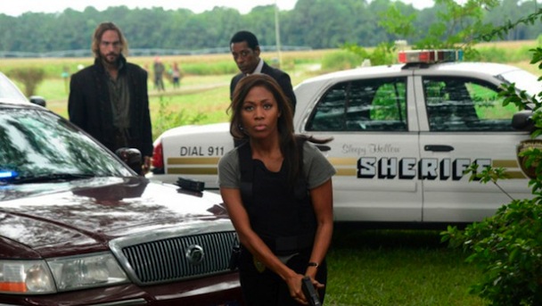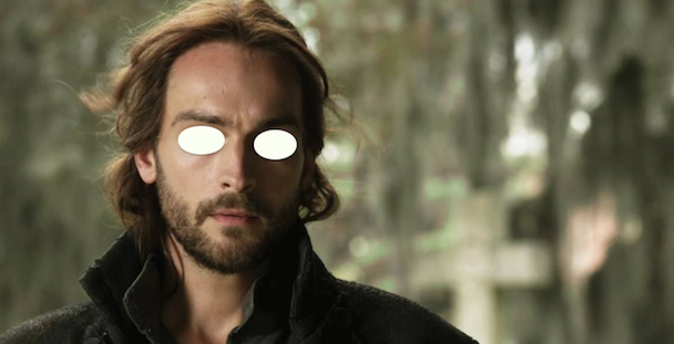 [Cue musical accompaniment.] Say your prayers, gorgeous one. Don't forget, my love, to dash to the Sleepy Hollow Police Department as soon as your caaaallled. Orlando Jones brings you in, keeps you free from sin, until The Faceless Nightmare Monster coooommmess. Buttttt whyyyyy is Ichabod in-terr-o-gating your sister?! That's pretty creepy, riiight? OH WAIT HIS FUCKING EYES. ARE. WHITE. MOST. DEF. A HORRIFYING NIGHTMARE ALL RIGHT. And check outtttt Faceless Nightmare Monster's Gross Haaaaands! We're back in Sleepy Hollow again! [Cue guitar solo, wahhh wahhh, etc.]