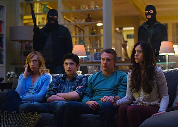 Hostages, from the very beginning of its hour-long premiere, felt desperate in its attempt to get you to feel anxious and interested. Which is crazy, because it's literally about people holding guns to the heads of a family and ordering one of them to murder the president. You don't need to trick us into being afraid that someone is around a corner, and then show us that it is actually just a cat! (Which is something that happened!) You don't need to show the hostage-takers taking the children and then pump up the scary music and make us think they're about to take Toni Collette, only to have it actually be her husband who enters the bathroom while she is in the shower. WE KNOW SHE'S GOING TO BE TAKEN SOON, WE'RE ALREADY NERVOUS FOR HER, QUIT IT WITH THE UNNECESSARY FAKE-OUTS! (And, in that scene, why do Toni Collette and Tate Donovan [her husband] look at each other so tensely when they are talking about a pasta timer? You don't know you're hostages yet! The pasta timer is just a pasta timer! STOP IT WITH THE MUSIC AND THE FACES!)