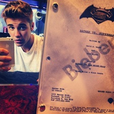 I don't mean to condescend to you guys, as I'm sure that many of you know about this already, but just in case you missed this news (we're busy! it happens!) -- over the weekend Justin Bieber Instagrammed a photo of himself with a Batman vs. Superman script, with the hashtag "#robin." So, so slick, this kid. Naturally, websites published the photo and speculated about what it could mean. Would Bieber play Robin in the Batman vs. Superman movie? Would life finally go our way, for once? Has Hollywood been reading our secret book, in which case we are half happy that they are making our secrets come to life, and half upset that they would betray the "keep out" sticker?! No. According to The Wrap, the script is not authentic and "is most likely part of an upcoming Funny or Die sketch." BOOOOOOO!!!! BOOOO WE WANT OUR STUPID BIEBER ROBIN! To sooth our broken hearts, I thought we might play a game: Justin Bieber movies. I will go first: