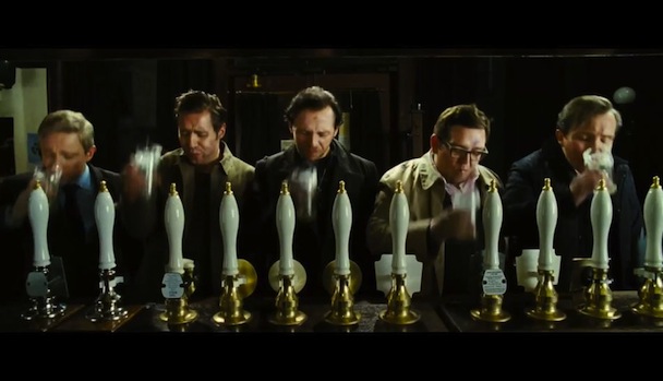 The World's End is the final chapter in Edgar Wright, Simon Pegg, and Nick Frost's trilogy, which also includes Shaun of the Dead and Hot Fuzz. It follows five friends who are goaded, for whatever reason, by their former ring-leader/current deadbeat friend into going on a pub crawl in their home town that they failed to complete 20 years earlier. Two bars in, they find out the town has been taken over by alien robots full of blue stuff that they choose to refer to as "blanks." The continue on the bar crawl because that is what the movie is. ARE WE ALL CAUGHT UP? OKAY!