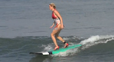 Is it hot enough for you, ladies?! It's hot enough for me! Too hot for me, really! So hot that you want to wear as little as possible when you go outside, even if the consequence is feeling like you're putting on a show for any slob you see on the street who feels entitled to stare at you, as if you have chosen your 100-degree weather wardrobe for him, because of our sexist culture! BUT ANYWAY, LADIES! You know how hard it can be to choose your footwear for when you go surfing. What do you wear? Sandals? Sneakers? Are there special surfing shoes? Does it not matter because surfing seems a little too intense for you -- like, it seems fun and you'd love to be able to do it, but the chances of you being able to do it are slim and the chances of you paddling out and standing up and falling over directly onto a sharp rock are a lot less slim? Or do you wear high heels? "Oh, you must be joking," you're probably thinking, "I don't know the answer for sure -- I think maybe you just don't wear anything on your feet typically, or maybe you wear some short of water shoe if you want to -- but I am almost positive that no one could surf while wearing high heels. Sneakers maybe, sandals perhaps, but DEFINITELY not high heels." HAH. Well, Professor Surfing Shoes, look who's about to get PROVEN WRONG! (In this one case.) (With these very talented ladies.)