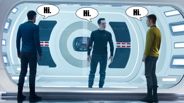 Probably the biggest problem with the latest installment of Star Trek is just that it doesn't really seem to take us anywhere. At the beginning of the movie, Kirk is excited because he thinks he's about to get assigned on a five-yearexploration mission, and at the end of the movie, that is exactly what happens. OK, good for him. I am seriously very happy for Kirk and his career. But I don't want to watch a movie about a five-year exploration mission, which, incidentally, doesn't even seem that different from what he was already doing, which is ruining volcanoes and warping all over the place. I guess Spock has a feeling now, or something. So that's cool. What I'm saying is that this movie was fun, and I enjoyed watching it, but what keeps it from being great is that it doesn't really set up anything for the future. The movie started with the crew of the Enterprise being pretty solid and enjoying each other's company, and it ends that way. For two seconds in the middle it seemed like the Earth was in trouble, but actually I think it is fine. With these types of franchises, the very best middle-installments are the ones where the world is changed in a meaningful and often times unpleasant way. You're not sure what's going to happen to these characters, because they've changed, or whether they are going to get back together, because they are now apart, or find what they are looking for, because they still haven't, or whatever obstacles still remain in their paths. Not here. Here, we end basically where we began. Fair enough.