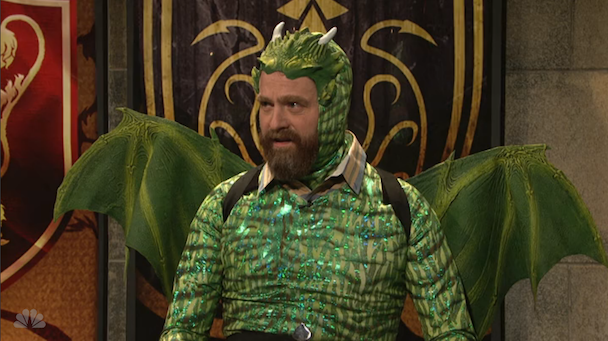 Saturday Night Live returned this past weekend from its short hiatus with host Zach Galifianakis and appearances from Nikolaj Coster-Waldau, Bradley Cooper, Ed Helmes, Jon Hamm, and NOT Jennifer Aniston or anyone from the cast of Friends. It was good! One thing we can be grateful for is the trust SNL clearly has in the comedy of Zach Galifianakis -- his monologue, as it has been in the past, was a bit of his standup, and the rest of the episode seemed, if not specifically catered to, at least comfortable relying on his specific style and energy. Did it work? Ehhhhhh, mostly! It definitely worked most of the time. And letting him alter the tone of the show in that way probably definitely worked more than forcing him into the SNL tone would have. But, there were some problems. As he has in the past, Zach often tripped over his lines, which took a bit of comedic steam away from the mix of vulnerability, instability, and pride of his characters with its real sense of vulnerability and instability. And if you were not already an unconditional fan of Galifianakis, that specific character blend, used in almost every sketch, could have worn on you a bit. Not that I'm saying any of us aren't unconditional fans of Zach Galifianakis! BUT I AM JUST SAYING! Anyway, let's watch some of the things.