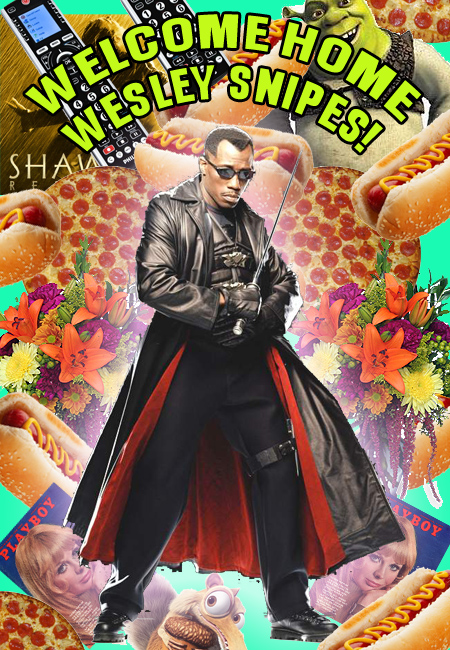 A little more than two years after going to federal prison for tax evasion, Wesley Snipes has been released. WELCOME HOME, BUDDY! I made you this card, buddy: