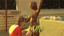 The day after the Academy Awards is always kind of tough, at least for people reading stupid garbage on the Internet (other people's lives continue to muddle through). Even in years when Jennifer Lawrence doesn't clock in to work at the one-woman GIF Factory, it's all "Vanity Fair Oscar Party This" and "Elton John Oscar Viewing Party That." There's the incessant rundown of what it all means, as if the answer is anything other than NOTHING. (Incidentally, this Tweet about how four of the examples in Seth MacFarlane's opening song about seeing actresses' boobs, which already, UGH-ITTY UGH-ITTY, actually came from RAPE SCENES should have about one million more retweets and provide the basis for a Michael Moore movie that eventually gets Seth MacFarlane pulled from shelves, and while we're at it even the Onion's now deleted Tweet calling a nine-year-old child a 'cunt' signals that perhaps this should be the last Oscars because we are not allowed to have forget nice things we just aren't allowed to have things period.) The point is, if you didn't have Oscar Fever before the Oscars, you definitely have it now, or at the very least, you definitely shouldn't touch any keyboards or share any magnums of champagne with anyone because this place is just lousy with Oscar Germs. Case in point, we had to go as far as BOINGBOING to find any semblance of life outside of the Oscars, and even then it is just a two-year-old, 7-minute-long performance art piece featuring a half-naked woman covered in Nutella and bolero music. Yikes.