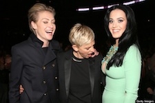 |LOS ANGELES, CA - FEBRUARY 10: (L-R) Actress Portia de Rossi, actress Ellen DeGeneres and singer Katy Perry attend the 55th Annual GRAMMY Awards at STAPLES Center on February 10, 2013 in Los Angeles, California. (Photo by Christopher Polk/Getty Images for NARAS)GET THE STEREOGUM DIGEST