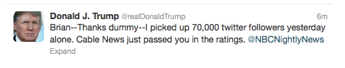 Kelly: Donald Trump called Brian Williams out on Twitter and said that he is boring and not smart