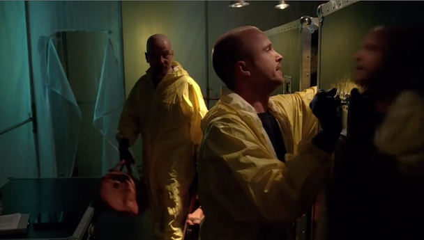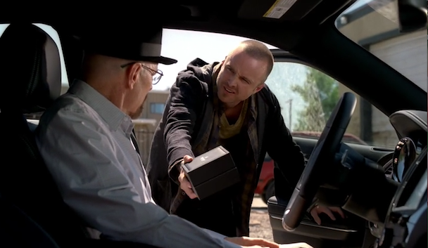 Uh. So. I really hated the cold open this week! It's frustrating, because I do like the idea that Walt bought Walt Jr. the car that Skyler made him return the first time around -- further proving (as if we need it) that she is too afraid of him now and he is too much of a jerk for her to have any say in any matter. That is a fine (not great since no doy we get it, but fine) idea to present in the cold open. But, my goodness, did it have to be presented in such a ridiculous way? From the beginning to end! DUBSTEP? Walt being SO EXCITED about the cars, pounding on the wheel? Selling the car to the guy for $50 and seeing the stupid hat in the backseat and looking at himself in the mirror with the stupid hat on? (Also, why was the hat in the backseat? You just left your hat in the backseat when you dropped off your car at the mechanics? WHAT IF YOU NEEDED IT?) Well, actually, those are two different kinds of annoying. The part where he looked at himself in the window with the hat on is in the same kind of comic book tone that I hated last season (and that you guys LOVED, apparently) when Gus walked out of the room without half a face before collapsing. You jerks (just kidding you're the best!) defended it by saying that Breaking Bad has always had a somewhat comic book-like tone and probably Vince Gilligan said in an interview at one point that he loves comic books or whatever, but TO ME what is nice about Breaking Bad is that, for the most part, the character's intentions are reasonable and when crazy stuff happens there is a clear, basically realistic path to that crazy stuff, and it doesn't make you so mad to watch. Walt having a hat that he wears when taking on his even crazier alter-ego is unnecessarily fantastic, and taints the idea of watching a real human's descent into the crazy, mixed up world of drug dealing. That is why that is annoying -- it just feels lazy and inconsistent. (Also another annoying thing was the mechanic saying whatever he said about how "free is always nice." OK WE GET IT NOW.) Why buying the cars was annoying is because it just doesn't make any sense. If Walt's main objective right now is to surpass Gus Fring in becoming World's Best Meth Kingpin, why would he do the opposite of what allowed Gus Fring to meth under the radar for so long? Like. What? (I guess the point would be to show that he is so smart that he doesn't even have to drive a Volvo or whatever and he can still not raise any suspicion. But that is also dumb. Dumb plan for a dummy.) Isn't he supposed to be smart? Even if he is crazy, it's just not believable that his desire to WIN WIN WIN at the drug game wouldn't surpass his apparent boner for cars. And, ugh, the dubstep. So maddening. UGH. But anyway, let's talk about the rest of it. The rest of it wasn't as upsetting.