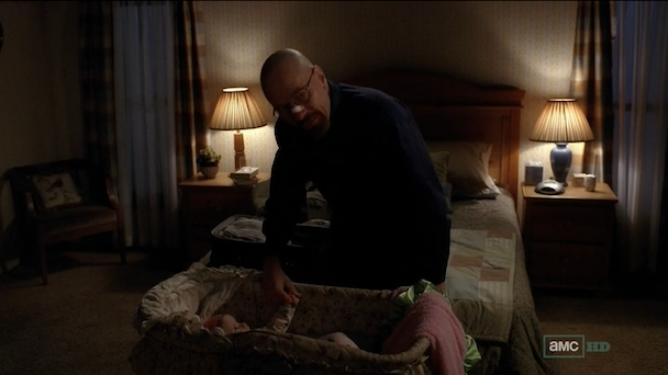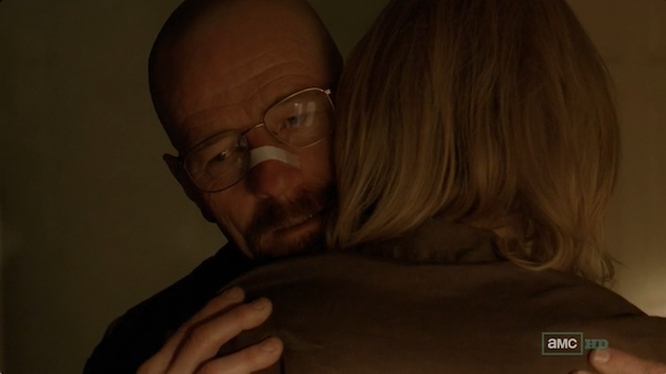 The episode ends with Walt coming home to find Skyler changing the baby on the bed (gross). He embraces her, and in a total dick power move tells her that he forgives her. It's better than what I thought he might be doing, though, which could have been ANYTHING! That guy is scary!