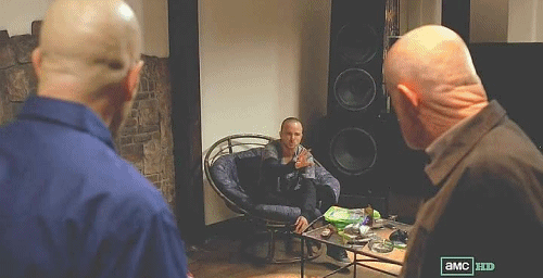His face made me think that he had already seen some of the videos on the laptop, because why else would he be so upset and confused at this laptop? Right? Did anyone else think that? IS THE JIG UP ALREADY? We don't know if the jig is totally up already, but back in the Buddy Den all the buddies are trying to figure out their MO. Mike pretends to be a USPS official and calls the APD about investigating meter fraud as a means to obtain information about the laptop and I still have no idea how or why that would have worked, but, in any case, it did. (But seriously, how? What? Why did they give him information about a laptop obtained from a druglord murder victim because he said he was from USPS?) (Were they video chatting? Did he see the laptop in the background?) (HOW STUPID AM I, EXACTLY?) They have the laptop and Mike thinks that there's no way to get it back, but Jesse wants him to give Walt a chance. "He's good with this stuff." Aww, JESSE I LOVE YOU WHY ARE YOU MARRYING THAT BEAUTIFUL YOUNG WOMAN IN REAL LIFE. Mike and Walt argue about how to go about destroying the laptop from the inside, while Jesse flails around in the background yelling about how they should maybe use a magnet, and when they finally pay attention to him he does this GIF: