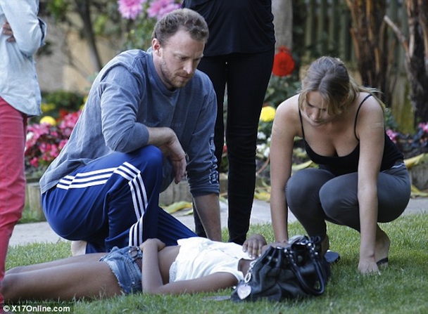 The 21-year-old was standing outside her apartment complex in Santa Monica when a woman walking past suddenly collapsed on the grass.