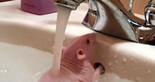 Ahhhhhhhhhh! I don't think I will ever get tired of chimpanzees interacting with humans and/or doing things that humans do. Since coming across that video I've watched it about 6 times, which doesn't seem like a lot, but when you compare it with the normal ONE time, well, it is five times more than that. Soooo. Great job, chimp! I'm aware that some of you might not be able to recognize how perfect the hairless rat taking a bath video is, so if you cannot recognize its perfection you can move on to kitten trying to wake up friend and dog playing fetch with itself. Very easy to love. Very cute. And then, what do you know, you have ANOTHER TINY ANIMAL TAKING A BATH. What is this? A holiday? Yes. It's Wednesday. The day we watch the animal videos. Happy Wednesday! Goodbye!