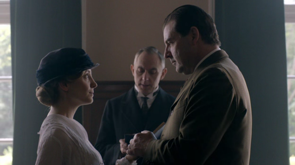 Later, Branson shows up and Sybil announces that they'll be leaving for Dublin in two days. She says to the Lord that she wishes they could be parting as friends, and he asks Branson if he feels the same way. Branson, SURPRISINGLY, honestly, says that he does wish the same. So the Lord says -- because of how he liked making out with that maid -- that if he can't stop them, he sees no profit in a quarrel. He gives them his blessing and even tells them that he'll give them some money. Great. Amen.