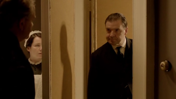 Downstairs, Hughes has gotten a letter from the Mrs. Bryant saying that she and her husband DO want to see that baby the maid had, and Thomas is trying to get Carson to let him stay at Downton for free because he doesn't have any money because he had to get what he deserved at some point. Carson says no, but then Thomas still stays! He seems great.