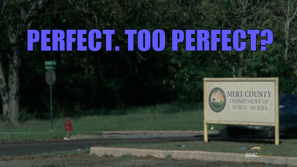 Shane notices that the odometer has passed 18 miles. What is this 18 miles business?! It has to be 18 miles on the dot? Every hour they have to drive 18 miles on the nose or the island will explode and a time cave. Grimes explains that he is looking for a spot where the kid will stand a chance. Sure. I mean, you are driving through a zombie wasteland and the world is over and everyone's lifespan is steadily shrinking by the minute, but you're definitely going to give the kid with the shredded leg that you have HOG TIED IN THE TRUNK an amazing CHANCE at the 19.3 mile mark. Grimes pulls up to a Public Works facility. "This will do," he says.