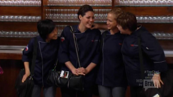 It's 2008, guys. We don't need to get excited about Battles of the Sexes anymore. They were never that fun to begin with. In fact, people dedicated their lives to ending them, and for good reason. I know we're just trying to have fun here, but I'm just pointing out that while divvying the contestants up into boys vs. girls is a totally reasonable way to divvy them up for a nonsense challenge in which everyone has 45 minutes to "create a restaurant" (not a real thing) but we don't have to pretend like it's a particularly EXCITING part of it. Because it's not. Anyway, far more "interesting" this year is that the teams will be cooking on consecutive nights rather than side-by-side, and each team will dine in the other team's "restaurant."