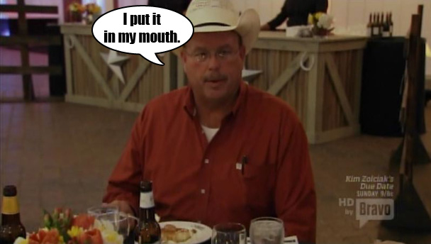 For this week's Elimination Challenge, the chefs will be cooking a four course steak dinner for a bunch of Total Steak Heads. And the dinner will take place at...wait for it...South Fork Ranch. Everyone LOSES THEIR SHIT.