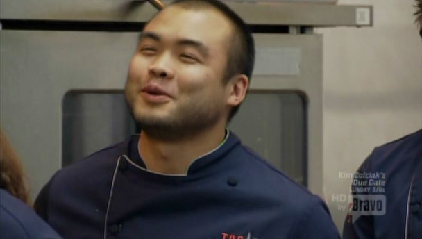 Dean Fearing keeps asking people if they used a roue in their mother sauce and people keep saying no and he keeps smiling but you know on the inside he is not smiling. Does anyone on this show know what they're doing? It does seem early still in the season, but this really is starting to feel like the worst group of contestants ever. Anyway, Dean's least favorite dishes were Dakota's scallop and peaches with bechamel (yuck!), Nyesha's tomato something or other (with coconut? what up?), and Beverly's sushi roll with steak that was supposed to have a mother sauce on it but it turns out "soy" is not a mother sauce. Eek to all three of these clowns. The best dishes were Grayson's scallop and ravioli, Paul's quail with espagnole sauce, and Gay Chris's halibut with velouté. The overall winner is Grayson. Good job, Grayson.