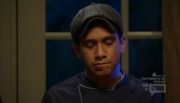 I'm not sure if you noticed, but last week was Thanksgiving. Someone on Twitter yesterday wrote, "I am really sad that @videogum went home for Thanksgiving and forgot to write a Top Chef Episode 4 recap. #gabeisonthebubble." You're using the word "forgot" wrong. If Bravo wanted thoughtful blog recaps of their show, they wouldn't have aired it THE NIGHT BEFORE THE MOST WONDERFUL DAY OF THE YEAR. Forget THIS. Anyway, what do you want to know? The Quickfire was cooking with hot peppers, and the Elimination Challenge was making chili. Some of the chilis looked good and some of the chilis looked bad, but in the end I think it turned out that all of them were bad? Like, one chili won, because it is Top Chef, not Top Eliminate Everyone For Their Bullshit Chili, but the judges seemed to have a lot of complaints about everyone. Who was so tired! I almost forgot to mention how tired everyone was. Because chili has to cook all night, or something? I don't know. It seemed like there were probably ways in which everyone didn't have to stay up for 24 hours, but they did, and then they bitched about it, so that was fun. It's neat watching people bitch about how tired they are. (This guy knows what I'm talking about.) In the end, Richie went home, but not before crying. Awww. Poor Richie. The pressure finally got to him. After two challenges. The other guy, you know the one, the one who is a guy but looks like he wears a scrunchie but can't find his scrunchie at the moment even though it's around his wrist? That guy hugged Richie and was telling him how great he is. Which is very nice. But also a lie. He's not that great he just got eliminated. Sooooo. This week we pick up right where we left off. You can still see the Richie Tear Stains all over Scrunchie's chest.