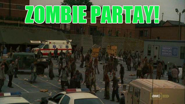 Meanwhile, Shane and the fat guy are hanging out in the FEMA High School parking lot, just smoking Parliament Lights and talking about Skrillex or whatever when UH OH, Zombie party.