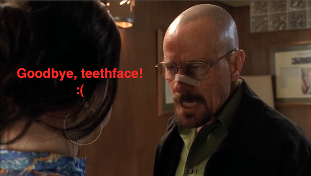 So, I don't know. I do think that this was a great ending to a great season, but it wasn't without its problems. The Mike thing isn't a problem necessarily. Just the other things. But. Yes. A fantastic season of television's most fantastic show. I can't believe we have to wait a year for a few more episodes and then it'll be out of our lives forever. I love you, Breaking Bad! I miss you already!